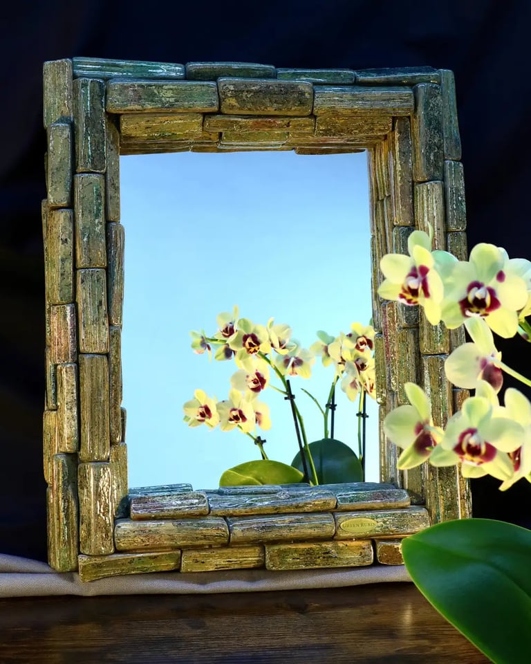 Lange pendelte ich zwischen unterschiedlichen Kunstrichtungen und fand in der Arbeit mit Holzscheiten schließlich meine Erfüllung. In ihrer Unregelmäßigkeit Harmonie und Ordnung zu entdecken – diese dort zu kreieren, wo es auf den ersten Blick unmöglich scheint – das treibt mich an. Es ist ihre Natürlichkeit, die mich anzieht. Eine Erinnerung ans Kindsein. An eine Zeit, in der man von der Zeit unberührt mit Steinen spielt. Das tue ich heute als Erwachsener mit Holzscheiten – und ich liebe es. Dieses Gefühl steckt in jedem Spiegel, jedem Schmuckstück und jedem einzelnen Holzscheit der Marke GREEN RUBIN.