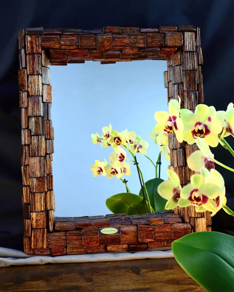 Mein Weg begann in der Literatur: Worte formten Bilder, Bilder wurden zu Geschichten. Nicht Planung leitete mich, sondern Intuition. Heute entstehen meine Spiegel-Unikate auf dieselbe Weise – hingebungsvoll, langsam und im Stillen, intuitiv, Holzscheit für Holzscheit.
