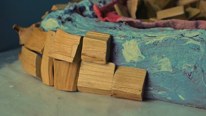 Die Holzscheite verklebe ich von Hand einzeln und schütze sie anschließend mit Klarlack. So entsteht nicht nur ein visuelles Vergnügen, sondern auch eine angenehme, geschmeidige Haptik. Dank der Klarlackierung können Sie Ihren Spiegel bei der alltäglichen Reinigung bedenkenlos mit feuchten Tüchern abwischen – ohne Sorge um die Holzscheite.